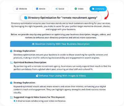 Keyword Finder AI generates comprehensive content briefs, including headline suggestions, meta descriptions, FAQs, and even social media posts. Users can easily follow these recommendations to create optimized content for blogs, websites, videos, and directories.