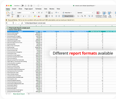 Use Our AI To Find "WeakSpot" Keywords That Can Drive Traffic To Your Client's Business Without Spending A Penny On Ads!