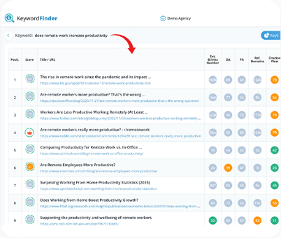 Keyword Finder AI finds the Weak Spot opportunities in the SERPs. These are the keywords your competitors are missing, giving you the best chance to rank quickly with minimal effort.